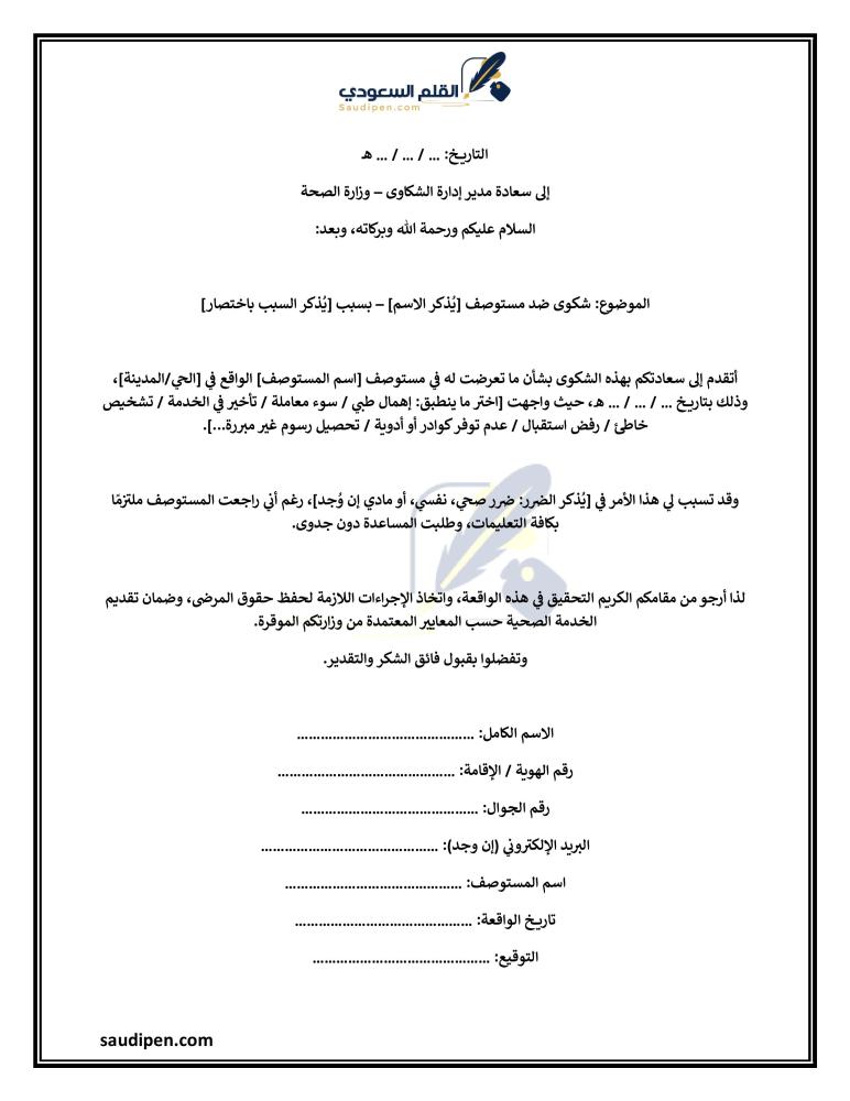 نموذج شكوى على مستوصف بمكة