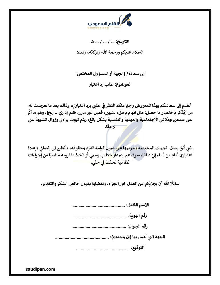 بينما يمكن الحصول على نموذج طلب رد اعتبار رسمي عبر التواصل بموقع القلم السعودي، الذي حرص فريق الكُتاب المهرة به على تقديم الخدمات الكتابية بأعلى جودة، حيث أنهم يتميزون خبرتهم الطويلة في المجال، بالإضافة إلى قدرتهم على تخصيص الطلبات وفقًا لاحتياجات كل عميل على حدى، مما يؤدي إلى قبولها من المسؤولين بسهولة ويسر دون عقبات.
