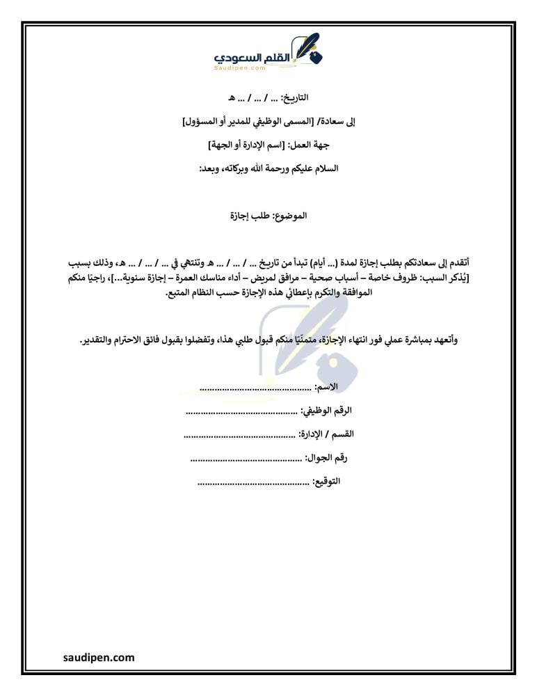 راجياً من سعادتكم التكرم بالموافقة على طلب الإجازة، وتفضلوا بقبول فائق الاحترام.