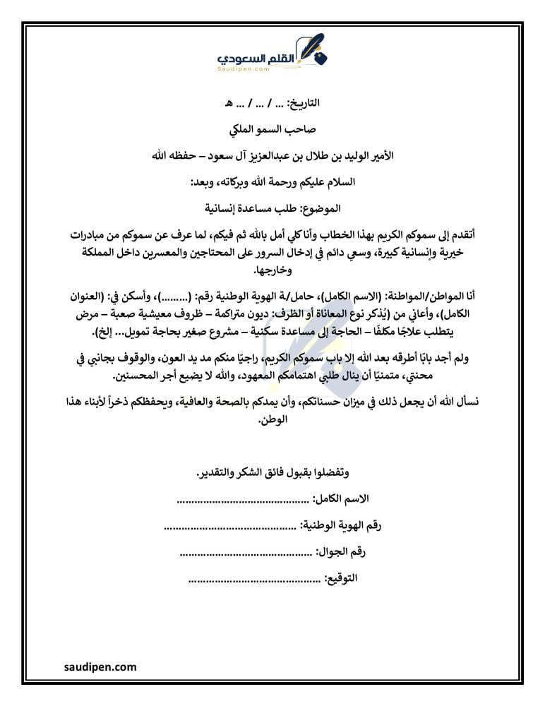 يبحث العديد من المواطنين والمقيمين بالمملكة العربية السعودية عن أفضل صيغة لكتابة خطاب الوليد بن طلال، الذي يمكن توضيحه كما يلي:
