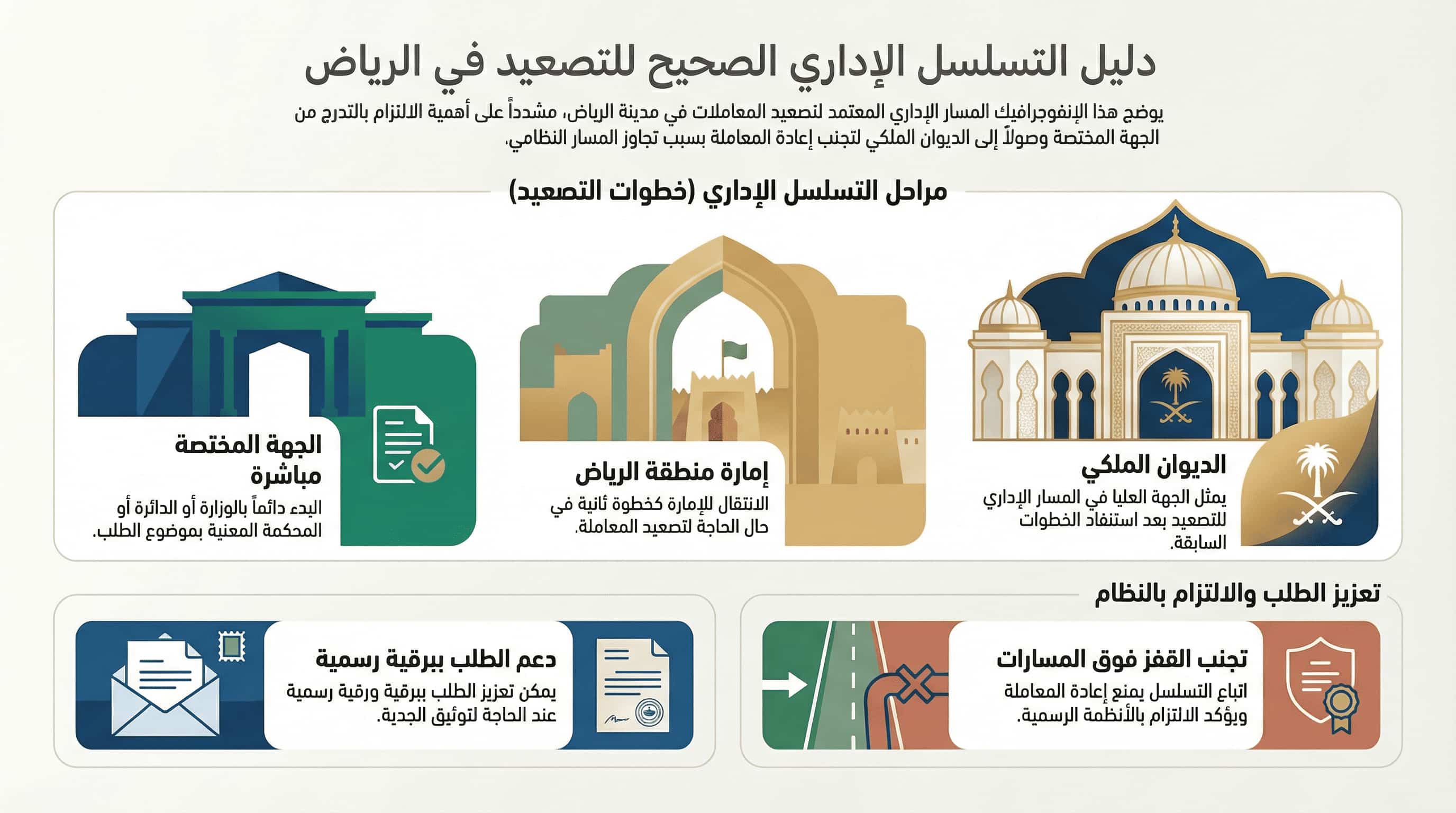 من أكثر الأخطاء شيوعًا رفع الطلب مباشرة إلى الديوان الملكي بينما القضية ما زالت ضمن اختصاص الإمارة، أو العكس.